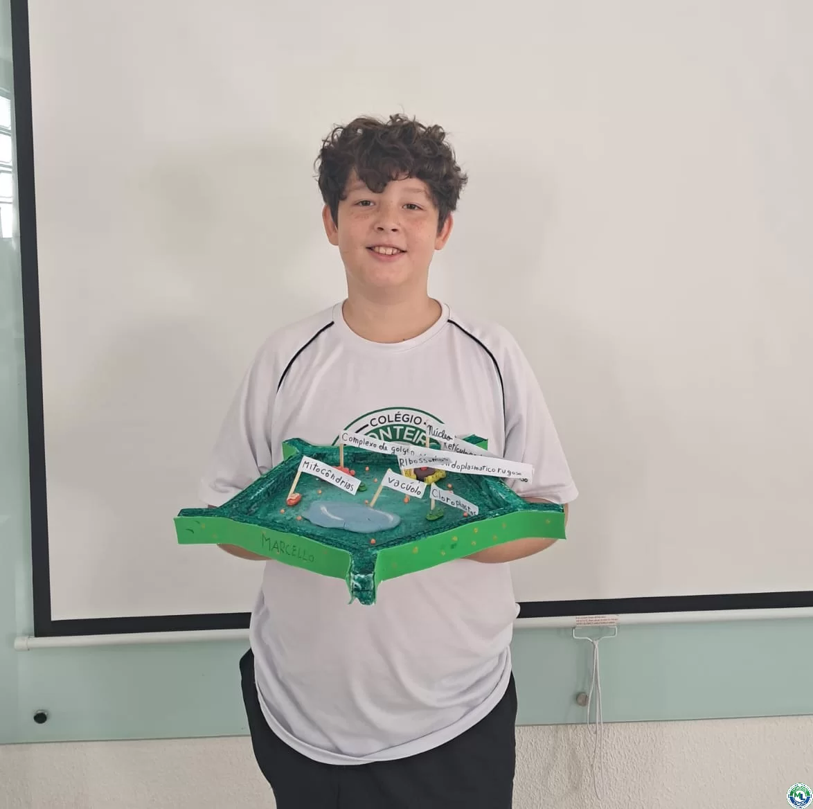 Nossos alunos colocaram a mão na massa para construir modelos 3D de célula animal e vegetal! A proposta foi transformar a teoria em algo concreto, visual e divertido — e o resultado foi simplesmente maravilhoso! Durante a atividade, revisamos as principais estruturas celulares, como membrana plasmática, citoplasma, núcleo, mitocôndrias, além das estruturas específicas da célula vegetal, como parede celular, cloroplastos e vacúolo central. Ao montar cada organela no modelo, os estudantes puderam compreender melhor suas funções e perceber, na prática, as diferenças entre a célula animal e a vegetal. Mais do que aprender nomes, eles desenvolveram habilidades como trabalho em equipe, organização, criatividade e raciocínio científico. A aprendizagem se torna muito mais significativa quando o aluno participa ativamente do processo! Parabéns, 6º ano, pelo empenho e dedicação!