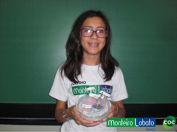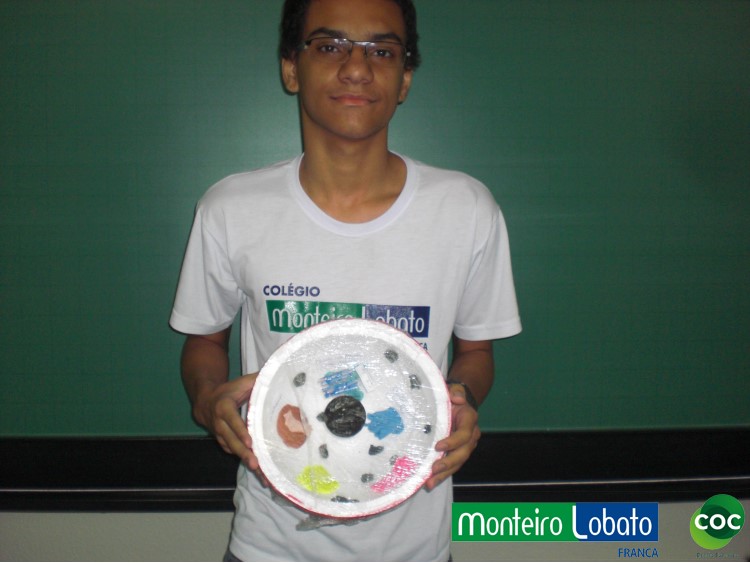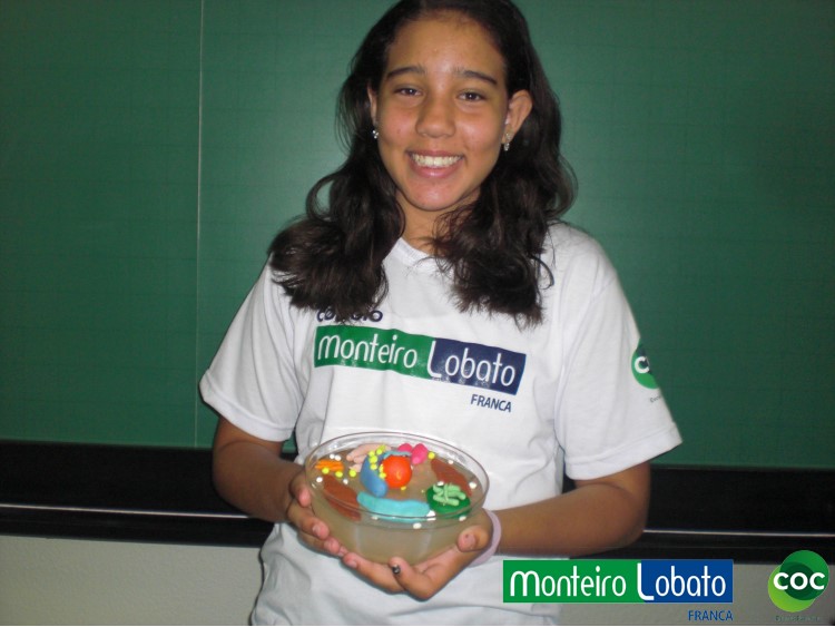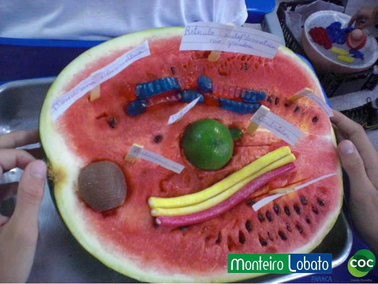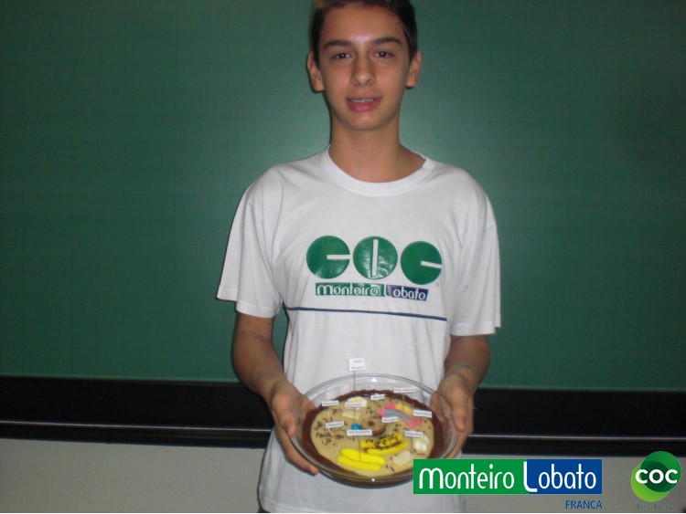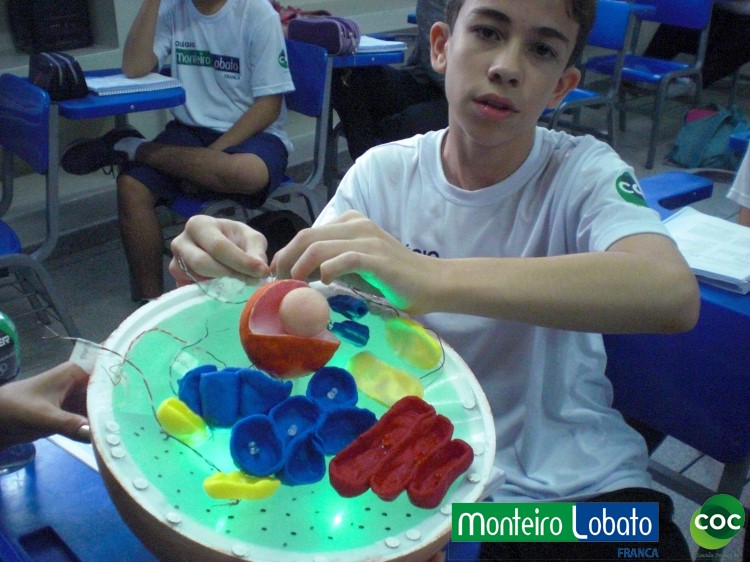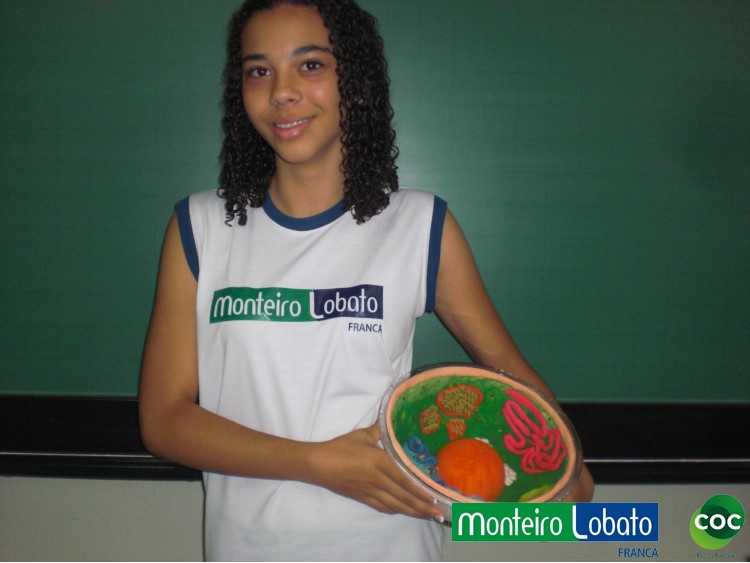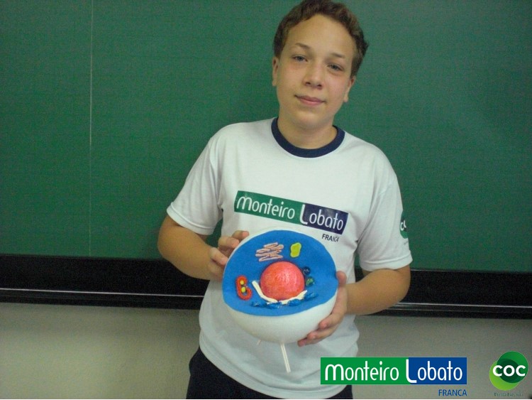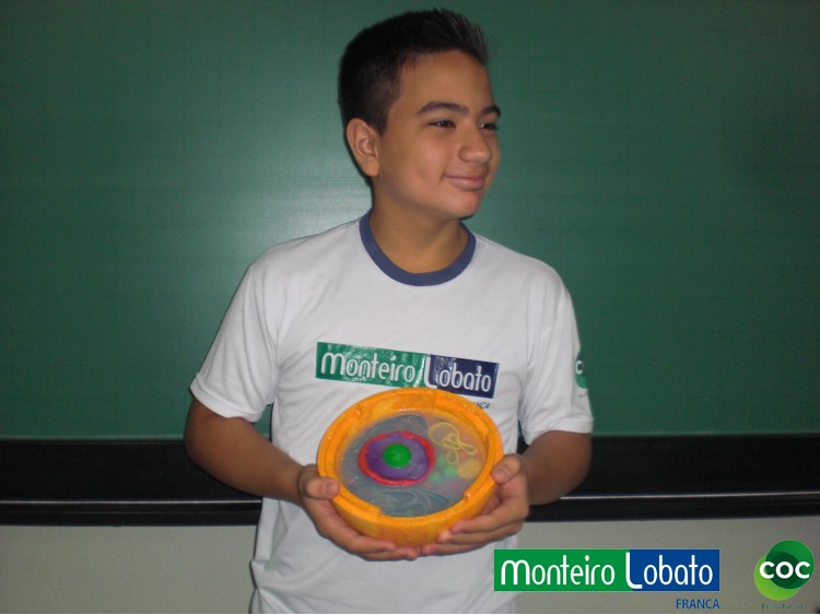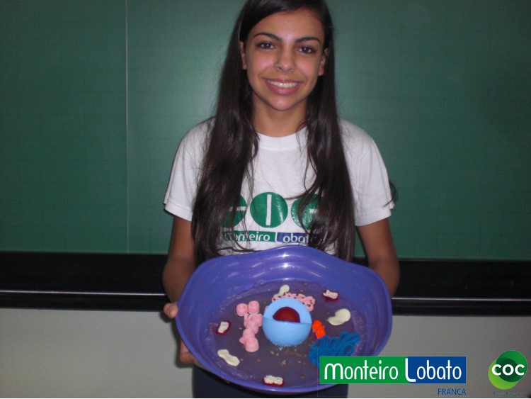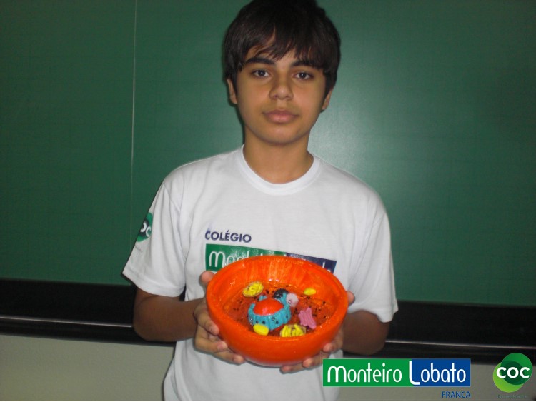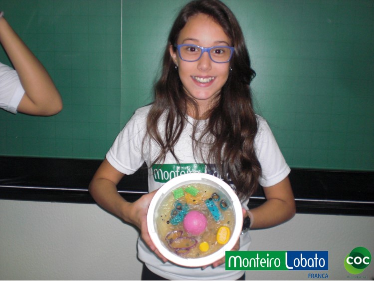 Desenvolvimento: Os alunos do 8º ano, construiu um modelo de célula eucariótica em 3 dimensões, buscando representar de maneira clara as diferentes organelas. Para construir seu modelo 3D. Na construção do modelo tridimensional da célula animal usaram diversos materiais, como massa de modelar, macarrão, gel, gelatina, papel, parafina, isopor, frutas entre outros. Essa atividade envolveu não apenas os conhecimentos acerca da estrutura da célula como também as funções desempenhadas por cada estrutura representada na maquete construída, especialmente das organelas citoplasmáticas.