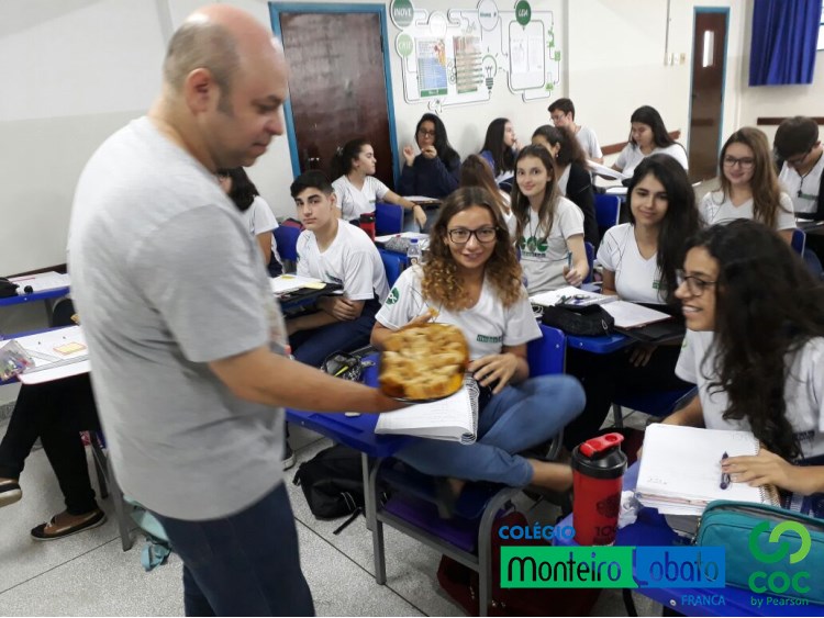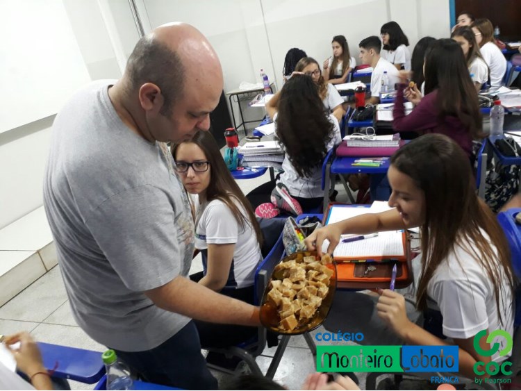 Alunos do Terceirão tem aula sobre economia açucareira. Para adoçar a aula, o professor Claudião trouxe e serviu para os alunos uma deliciosa rapadura, que é um subproduto da cana de açúcar.