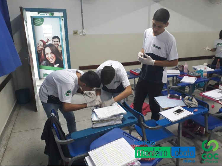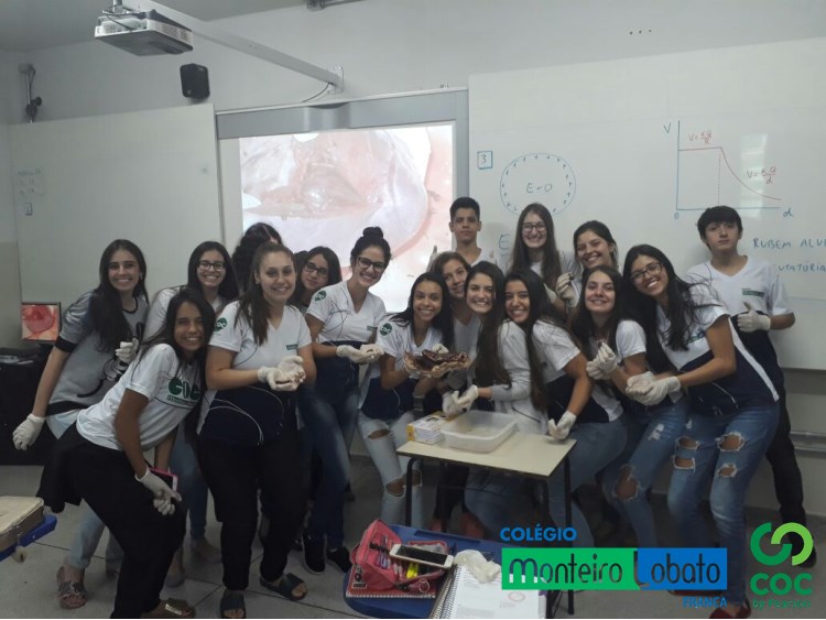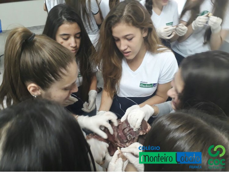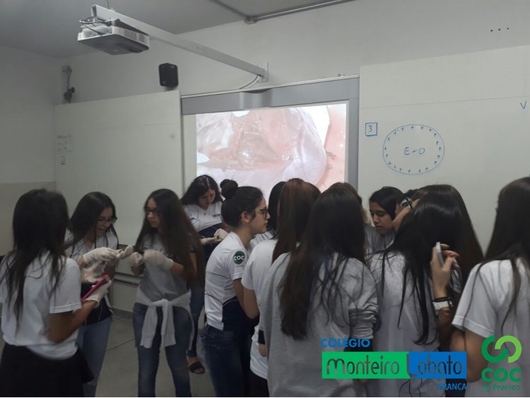 Aula sobre Sistema Circulatório com o prof. Rafael (Biologia). A turma da 2ª série E.M. puderam na aula de hoje manusear o coração bovino e de frango e observar as cavidades cardíacas, veias, artérias e também as válvulas. Reforçando os conceitos e conhecimentos adquiridos nas aulas teóricas.
