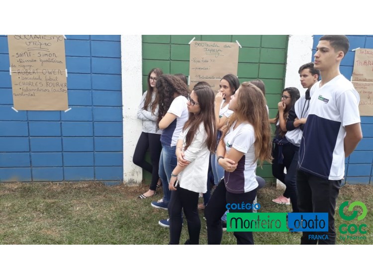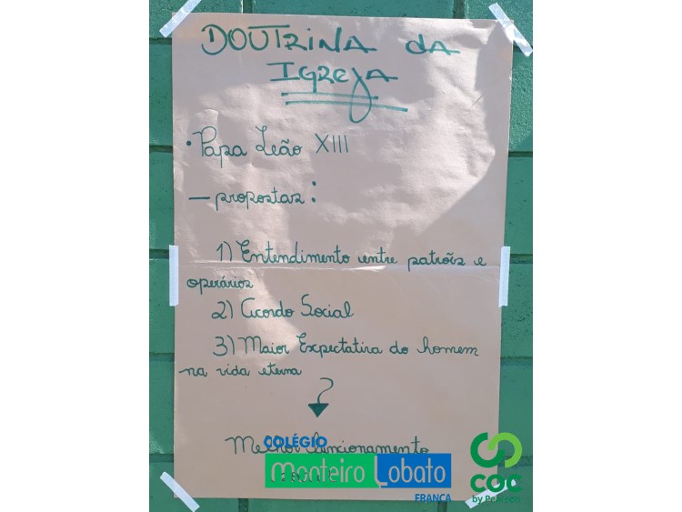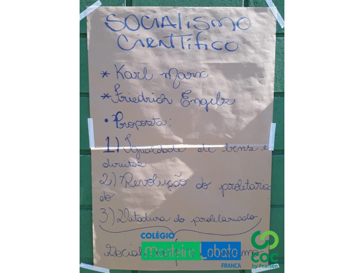 De modo informal e descontraído, o professor Claudius (História) promoveu entre os alunos da 2º série do Ensino Médio uma análise das Novas Doutrinas Sociais (Socialismo Utópico e Científico, Anarquismo e Doutrina Social da Igreja) evidenciadas no século XIX.