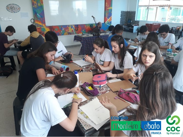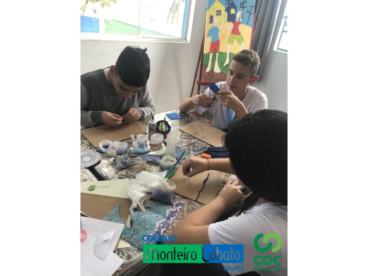 Arte Mosaica e boa música (na agulha), como nos tempos do Império Bizantino!!!Aula de História da Arte no Monteiro Lobato COC com o professor Cláudio Luther nas pick-ups!!!Somzeras!!!