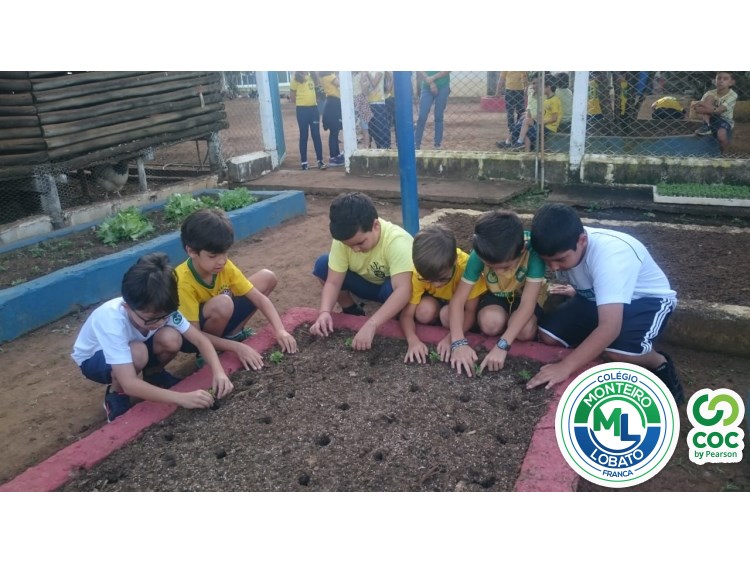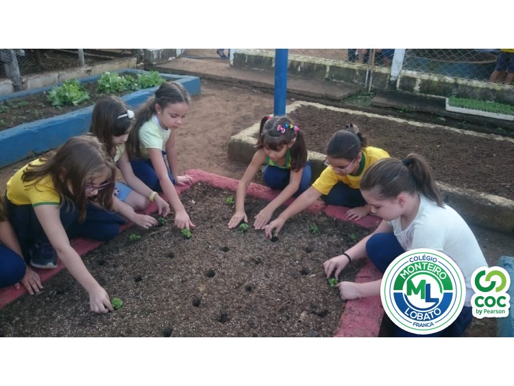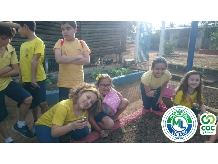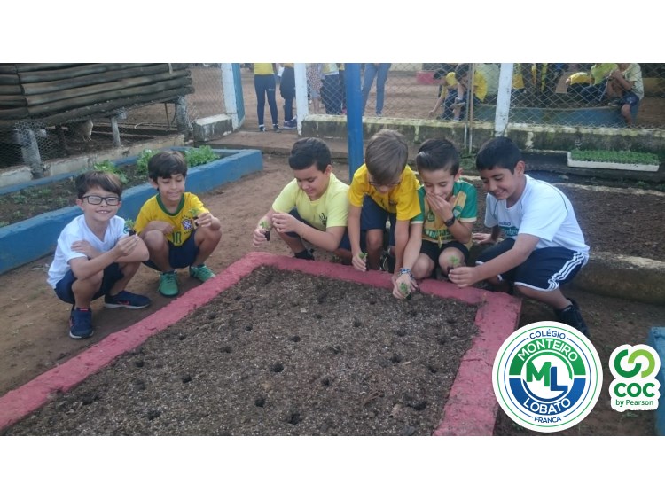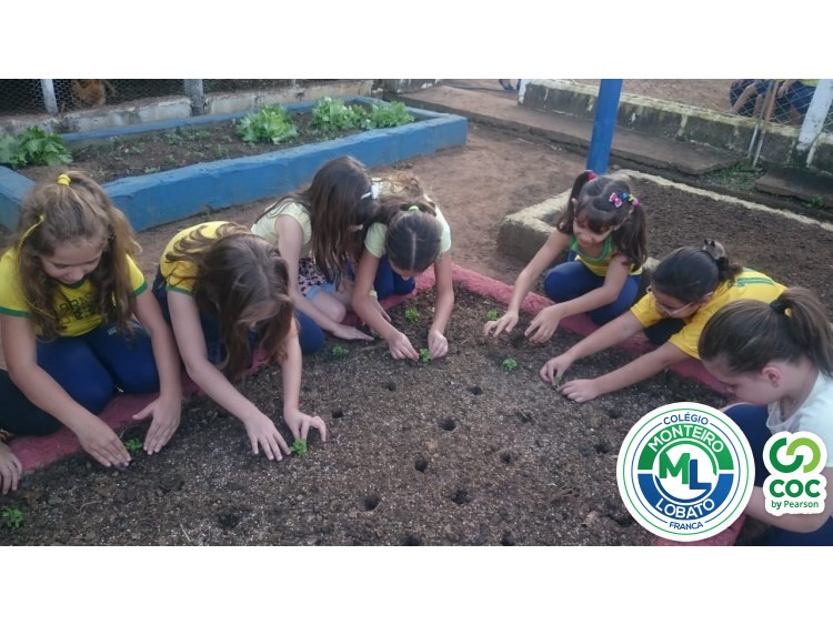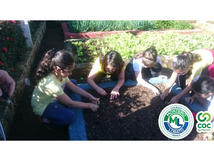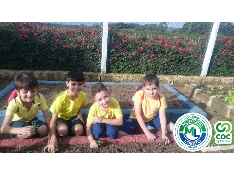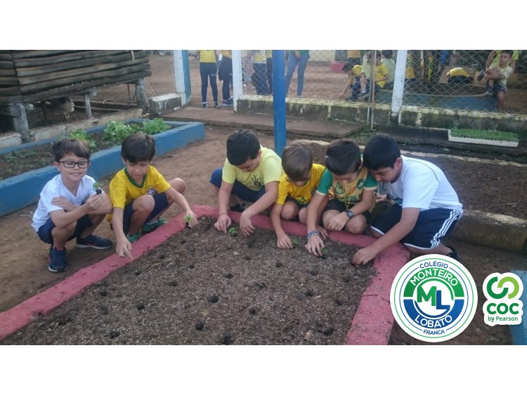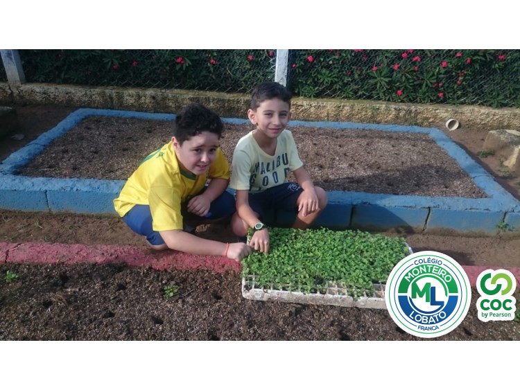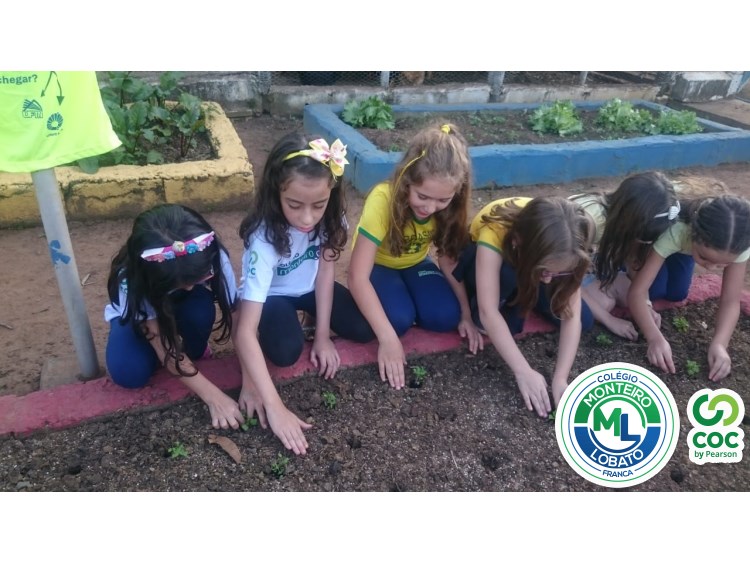 Para complementar os estudos na área de Ciências da Natureza, os alunos dos 2º e 3º anos visitaram nossa horta e plantaram as mudinhas de rúculas.
