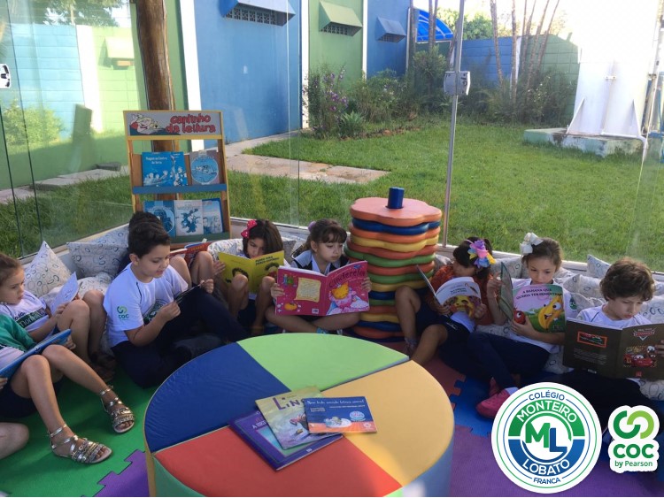 Aula de leitura na disciplina de CDLP (Centro de Desenvolvimento da língua Portuguesa). Seja por prazer, seja para estudar ou para se informar, a prática da leitura aprimora o vocabulário e dinamiza o raciocínio, a interpretação e a escrita. Juntando tudo isso com um espaço agradável e perto da natureza, o resultado não pode ser outro: prazer de ler!