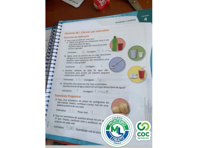 A melhor forma de aprender é colocando a mão na massa, então na aula de matemática para aprender sobre ESTIMATIVA os alunos dos 2º anos fizeram a experiência de testar por exemplo quantos copos de água cabem dentro de uma garrafa, ou quantas colheres de sopa de água cabem em um copo descartável , primeiro eles fizeram a estimativa e depois fizeram a experiência de medir para conferir se a estimativa que fizeram no inicio estavam certas.