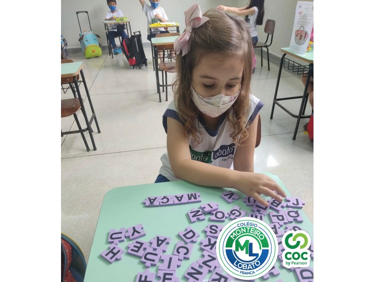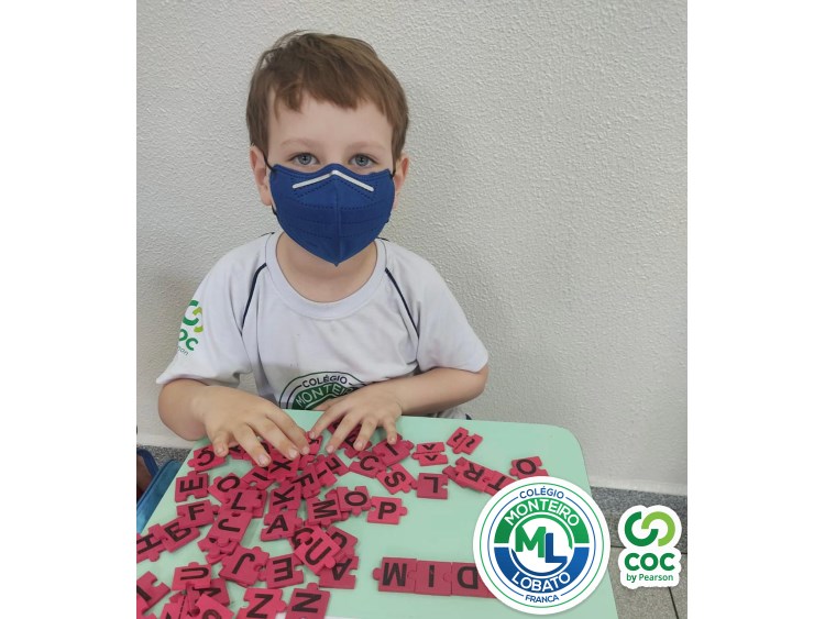 A alfabetização envolve alguns processos como a consciência fonológica, o conhecimento das letras e o reconhecimento do uso social da escrita. Assim, as crianças do Infantil 5, de forma divertida e descontraída exploram a percepção da escrita e a composição das palavras com o alfabeto móvel. De forma lúdica e atrativa as crianças aprendem brincando.