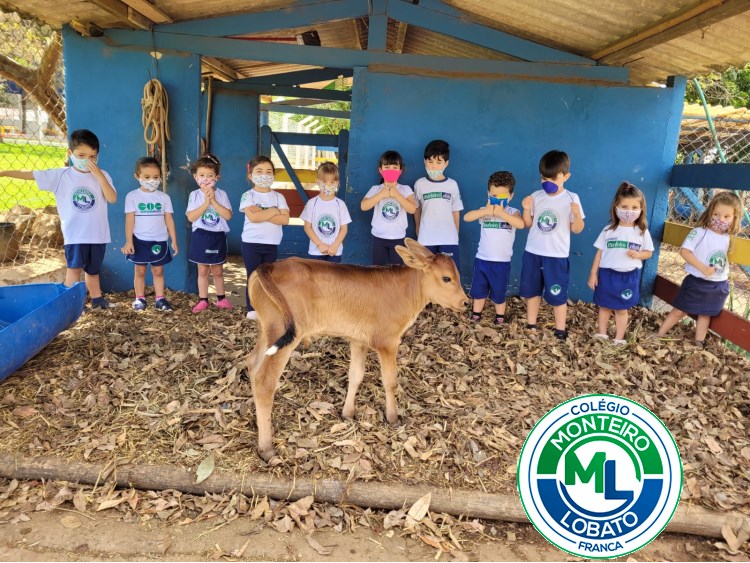 “Bom dia / O Sol já nasceu lá na fazendinha / Acorda o bezerro e a vaquinha” A turminha do Infantil 3 conheceu o novo integrante da fazendinha do Colégio Monteiro Lobato, um lindo bezerrinho. As crianças estão aprendendo sobre os animais terrestres, o que desperta um grande interesse por ser um mundo cheio de descobertas, e aproveitando essa curiosidade dos pequenos, as crianças passearam na fazendinha e observaram vários animais e o seu habitat.