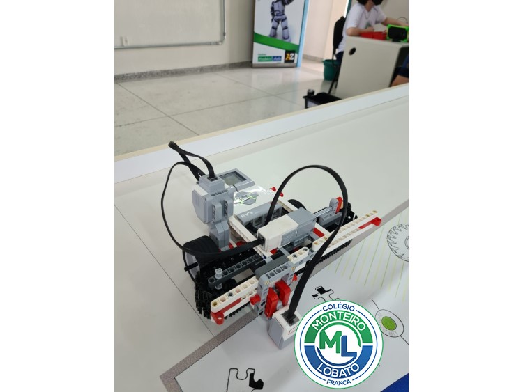 Nas aulas de Ciência e Tecnologia os alunos do 8º ano, em equipes, construíram um escâner que possui dois motores e um sensor de cor. Antes, discutimos a finalidade e o funcionamento de um escâner, solidificando os conceitos de pixel e sensores, tão presentes em nossas vidas. Depois de analisarem a montagem e programação adequada por meio de testes, os alunos foram convidados a desenhar um quadrado em uma folha branca e fazer com que o escâner pudesse copiar o desenho presente na folha para ser visto na tela do EV3.