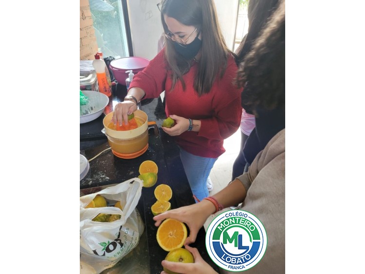 Para refrescar …. que tal um suco de laranja? Os alunos do 9°ano fizeram um suco de laranja diferente, eles testaram de forma prática o processo de pasteurização proposto por Louis Pasteur (1824). O método consiste na esterilização do suco através da fervura durante 20 minutos a 80°C seguida do choque térmico. Esse método é utilizado ainda hoje com o objetivo de eliminar microrganismos aumentando assim o tempo de conservação do alimento.