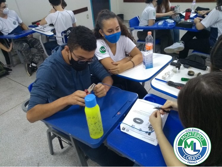 Os alunos da 2ª série do Ensino médio colocaram a mão na massa e construíram uma pequena instalação elétrica. O objetivo era montar um circuito elétrico capaz de ligar uma lâmpada por meio de dois interruptores paralelos, conectando cabos, soquetes e outros dispositivos elétricos. Eles tiveram que aprender a usar alicate para decapar fio, fazer emenda usando fita isolante, estabelecer as conexões entre os interruptores, enfim, desenvolver todo um conjunto de habilidades necessárias para se fazer uma instalação elétrica simples. Aulas práticas como essa permitem aos estudantes entenderem melhor os conceitos estudados nas aulas teóricas de física.