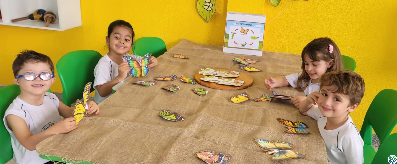No Infantil 4, exploramos o ciclo de vida da lagarta, compreendendo as etapas da transformação: ovo, lagarta, crisálida e borboleta. As crianças participaram ativamente, compartilhando seus conhecimentos e ampliando o repertório sobre o tema. Com a música “Borboleta Azul”, trabalhamos ritmo, oralidade e coordenação motora. Para consolidar o aprendizado, finalizamos com um quebra-cabeça da borboleta, estimulando atenção, percepção visual e raciocínio lógico. Aprender também é observar, cantar, montar e compreender os processos da natureza.